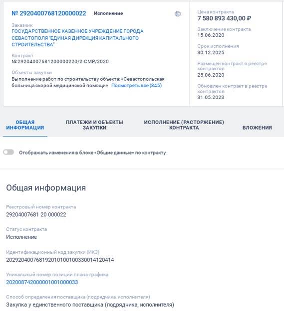 Заказчик по этому контракту - государственное казённое учреждение города Севастополя "Единая дирекция капитального строительства" (подконтрольно департаменту капитального строительства Севастополя), где в конце марта 2023 года сменился руководитель. Новым главой стал Иван Погодин, сменивший на этом посту Ольгу Гладышеву из Москвы. Та же в свою очередь пришла на пост после уволенного Вадима Бабкина, ставшего фигурантом уголовного дела о превышении должностных полномочий и служебном подлоге. Именно Бабкин руководил ведомством на момент подписания вышеуказанного контракта.
