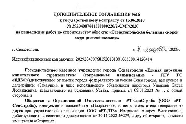 На сегодня к этому контракту уже заключено не менее 16 дополнительных соглашений, последнее из которых в марте 2023 года.