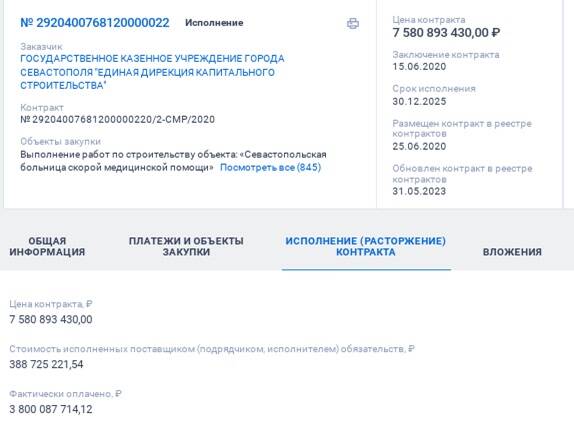 Более того, если в базовом контракте аванс должен был составить всего 30%, то в марте 2023 года этот показатель повысили до 60%. А, если смотреть в карточку тендера, то компания уже получила 3,8 млрд рублей, а работ выполнено на чуть больше 388 млн рублей. Но с учётом свежих поправок аванс должен быть 4,54 млрд рублей, то есть счета "РТ-Соцстрой" ещё пополнят.