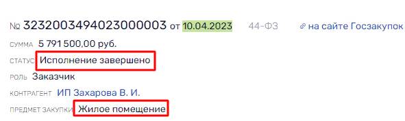 С ИП Захарова В.И. только 10 апреля заключены 19 контрактов с одинаковой формулировкой «жилое помещение» и ценой почти 6 млн руб.