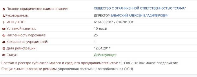 Если посмотреть регистрационные документы ООО «Сарма», то это обычная фирма с минимальным уставным капиталом – 10 000 рублей:
