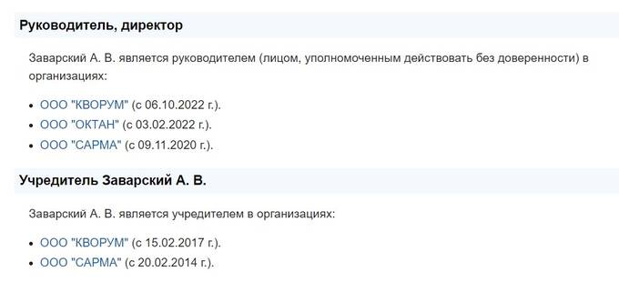 Кроме того, Алексей Заварский является учредителем еще нескольких фирм: