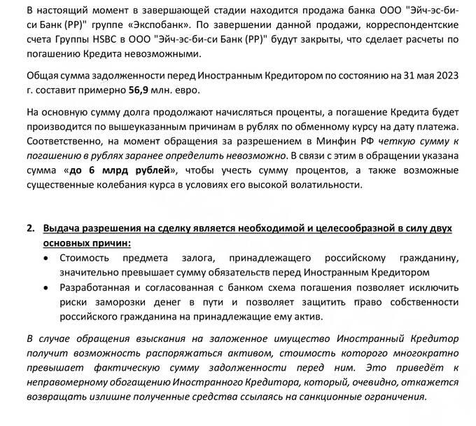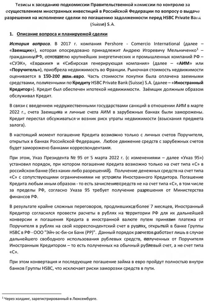 Как стало известно источнику, на Правительственной комиссии 18 мая 2023 рассмотрели и дали разрешение олигарху Мельниченко осуществить выплату в сумме 6 млрд. руб. по ипотечному кредиту, взятому на имение во Франции, стоимостью в 200 млн. евро.