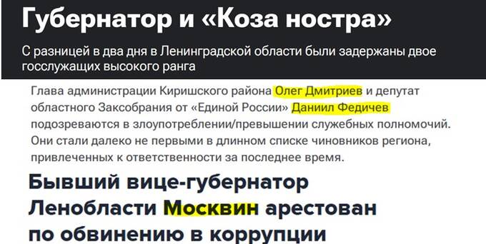 Сейчас у Березина действительно есть серьезные причины для беспокойства, поскольку отечественные правоохранительные органы открыли настоящую охоту за его главным «крышевателем». Речь идет о губернаторе Ленинградской области Дрозденко, в команде и близком окружении которого за последнее время произошло много обысков и громких арестов. Так, в частности, с начала этого года под раздачу попали следующие персонажи: