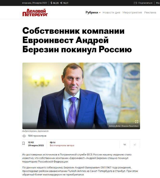 Здесь есть важный момент. Если бы речь шла о простом россиянине, то ничего. Но на самом деле Березин далеко не так прост. Он миллиардер и владелец крупной инвестиционной компании, дела которой на данный момент идут совсем не хорошо, а точнее – совсем уж плохо. Кроме того, на момент своего вылета из страны Андрей Валерьевич уже находился под следствием. На него завели уголовку по части 2 статьи 193 Уголовного кодекса РФ. Речь идет об уклонении от исполнения обязанностей по репатриации денег в особо крупных размерах. К слову, как пишут СМИ, это далеко не единственное уголовное дело, которое тянется за ним. На самом деле на него на родине заведено минимум семь уголовок. Также и в самом «Евроинвесте» обыски уже стали привычным делом.
