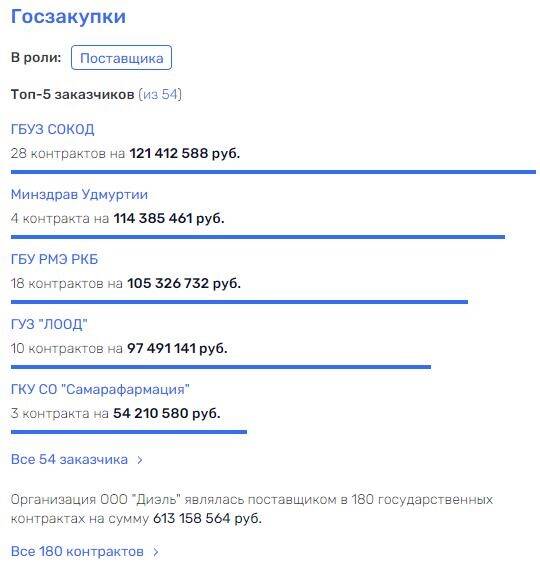 Речь о ООО "Татис", которая занимается разработкой программного обеспечения, и гипотетически могла принимать участие в делах того же "Диэль" и "Джи-Эс-Ти". А кроме того, за ним же и компания ООО "Кан-Продакшн", которая занимается производством химических веществ, используемых в медицине. И она тоже имеет госконтракты с учреждениями здравоохранения Самарской области - детской клинической больницей, самарским бюро судмедэкспертизы, и другими.