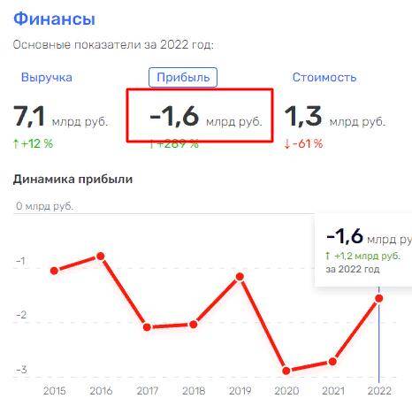 Убыток АО «Чеченэнерго» при выручке 7.1 млрд руб. составил 1.6 млрд руб., прибыли у компании никогда не было.