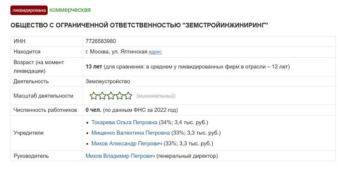 Кто это такой – установить не удалось. Известно, что ни одного действующего бизнеса на него не зарегистрировано. В отличие от тещи, которая еще совсем недавно числилась учредителем ООО «Земстройинжиниринг».