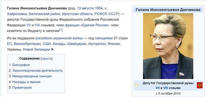Последнее опосредованно подтверждает и то, что Галина Иннокентьевна Данчикова находится под международными санкциями с 23 февраля 2022 года, в то же время как ее сын, Евгений Александрович Данчиков, туда так и не попал, вопреки требованиям Украины, к которым в подобных случаях обычно весьма внимательно прислушивается США.