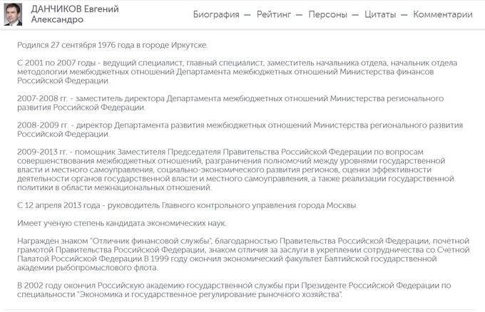 Начальник Главного контрольного управления города Москвы Евгений Данчиков привлекал общественное внимание за последние годы дважды. Первый раз – после последней публичной кампании декларирования, когда оказался самым богатым министром Москвы, второй раз – весной этого года, когда у него украли 20 тысяч евро из кармана в одном из московских кафе.