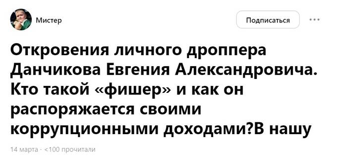 После последнего скандала с кражей в кафе 20 000 евро в прессе появилось немало любопытных публикаций о Евгении Данчикове. Большинство из них, конечно же, кроме кликабельного заголовка, не несёт ничего, кроме откровенных сплетен. Но в этом потоке попадаются и весьма любопытные вещи. Среди прочих – откровения некоего «дроппера» по поводу обслуживания клиента по кличке Фишер.