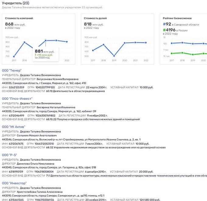 На 2021 год Кошелев также выступал акционером "Кошелев-банка", который ранее назывался "Росбанк-Волга". Там же акционерами являются и Дедова, и Карпяк. В выписке как раз подтверждается вышеуказанная родственная связь этих дам с депутатом Кошелевым.
