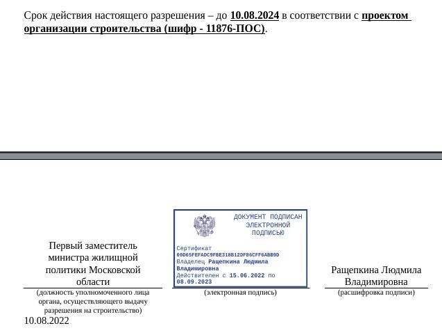 Разрешение на строительство Министерство жилищной политики Подмосковья выдало ещё год назад - в августе 2022 года. Срок его действия - по конец августа 2024 года. В целом, судя по сайту проекта, планируется возвести 200 тыс. кв.м жилья, а также ряд объектов общего назначения.