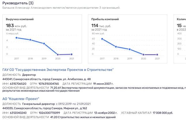 Кстати, у г-на Кошелева есть весьма не плохие связи и в сфере госэкспертизы. Бывший гендиректор АО "Кошелев-Проект" Александр Балашов в 2021 году ушёл в чиновники - стал главой ГАУ СО "Государственная экспертиза проектов в строительстве" Самарской области.
