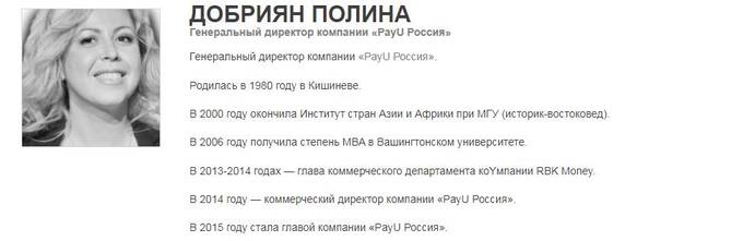 На самом деле данная барышня – весьма занимательный персонаж, о котором стоит рассказать подробнее. Она известна на рынке платежей и имеет там крайне мутную репутацию. В качестве примера можно привести результаты ее «работы» в «RBK.money», где после её ухода новые руководители на протяжении не одного года исправляли последствия того, что она натворила. Также она отметилась в «PayU» и «Wirecard». Кстати, компания «Wirecard» во время сотрудничества с Добриян потеряла 1,9 миллиарда евро. Без комментариев.