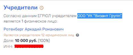 Учредителем ООО «УК "Визант Групп», которой ранее управляло ООО УК «Фин-Партнер», является сам Аркадий Ротенберг.