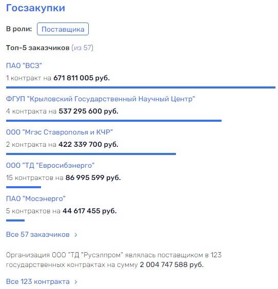 ВСЗ является крупнейшим заказчиком "ТД Русэлпром" с суммой контракта 671 млн рублей - как раз на поставку оборудования для ледоколов. Общий портфель госконтрактов компании превышает 2 млрд рублей.