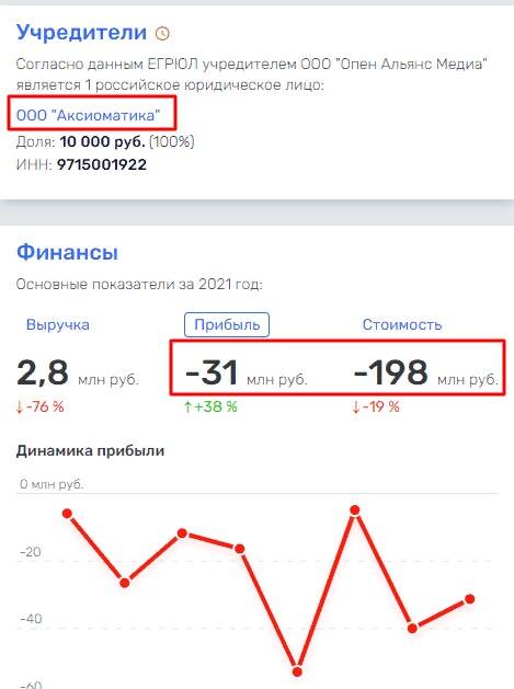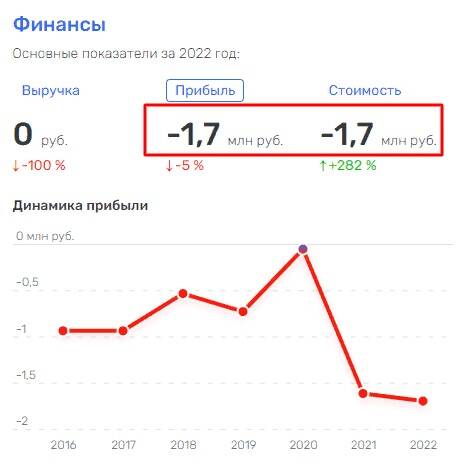 ООО «Флип Анимейшн Студио» тоже не блещет финансовыми результатами. В 2022 г. получило выручку 0, убыток составил 1.7 млн руб. Работающий в штате 1 сотрудник явно не тянет.