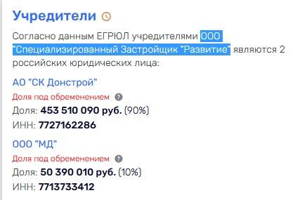 Доля учредителя в «дочке» ООО «Специализированный Застройщик "Развитие» находится под обременением ВТБ. Без него структура может не выжить.