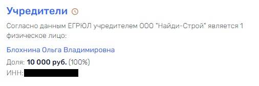 Она же учредитель ООО "Трейдинговая Компания "Найди" и еще ряда организаций, к которым может иметь отношение Найдин. Скорее всего, Блохина - лишь номинальное лицо.