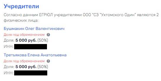 Доли обоих владельцев СЗ "Ухтомского один" находятся в залоге у "Сбербанка". Т.е. гуляют они не на свои. Компания убыточная, однако на протяжении нескольких лет у нее были скачки выручки. Последний - в 2021 году, когда она выручила 43 млн рублей. За 2022 год - ноль. Т.е., структуру гипотетически могли использовать, как "прокладку" для перегона денег в другие компании Бушмакина. А сама выручка, думается, могла быть получена от продажи участка, любезно предоставленного мэрией.
