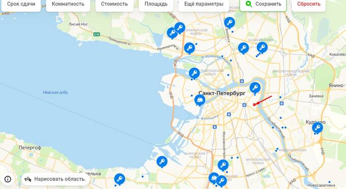 Карта новостроек Setl Group. Стрелкой указано примерное расположение Дома Лесниковых. Фото: https://www.novostroy-spb.ru