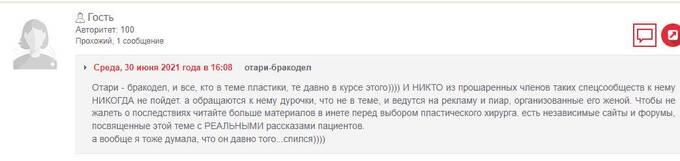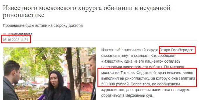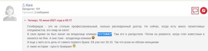 Федотова могла быть не единственной недовольной клиенткой Отари Гогиберидзе. Об этом свидетельствуют комментарии на форуме, размещенные в 2021 г.