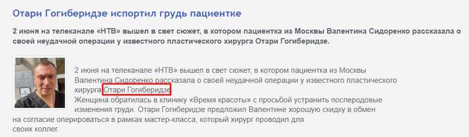 Естественно, что Яна Лапутина не будет называть в качестве причины смерти конфликт из-за неудачной операции, потому как это бросило бы тень на репутацию клиники «Время красоты». В написанном заранее материале Отари Гогиберидзе представлен как пластический «ангел».