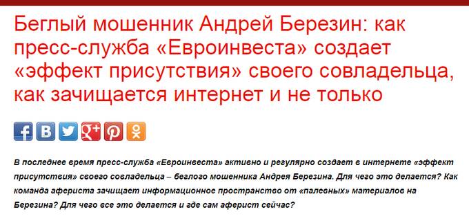 Это отдельная тема, которую Березин давно продвигает в информационном поле. О чем конкретно идет речь? О том, что медийники «Евроинвеста» в последнее время чётко выполняет поставленную Андреем Валерьевичем задачу – создавать в информационном поле уверенность публики в том, что он никуда не сбегал и находится на своем рабочем месте.