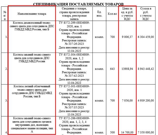 "Инвест-Холдинг" поставляет в учреждения МВД костюмы за 14,7 тыс. руб. Фото: https://zakupki.gov.ru/epz/contract/contractCard/document-info.html?reestrNumber=1616303058823000364&contractInfoId=83838611