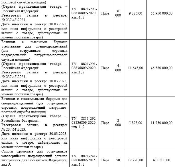Стоимость пары обуви для МВД может спокойно достигать 11 тысяч рублей. Фото: https://zakupki.gov.ru/epz/contract/contractCard/document-info.html?reestrNumber=1770607473722000042&contractInfoId=80977260