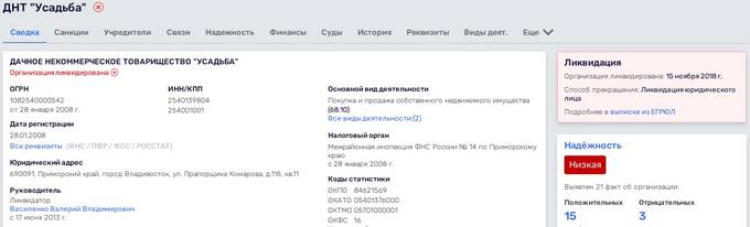 Из материалов другого суда известно, что дачному товариществу "Успенское" действительно передали в собственность пять участков общей площадью 64236 кв. м распоряжением профильного краевого департамента №1323-р от 05.10.2009 года. Кроме того, в материалах другого судебного спора сообщалось, что то самое увышеуказанное выше ООО "Ларсан" еще в 2011 году давало товариществу в долг крупную сумму, но детали не уточнялись. Вероятно, долг был оформлен под залог участков и в итоге те переданы новому собственнику под видом "оплаты". В ноябре 2018 года ДНТ было ликвидировано.