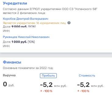 Не менее примечателен в этой истории и последний владелец наделов, которые достались ему по сложной цепочке, - ООО "Специализированный застройщик "Успенского 58", учрежденное в 2021 году явно под проект во Владивостоке. Компания по итогам 2022 года указывало нулевую выручку и чистый убыток 5,2 млн рублей, то есть можно сделать вывод, что к строительству и реализации будущего жилья еще не приступили.
