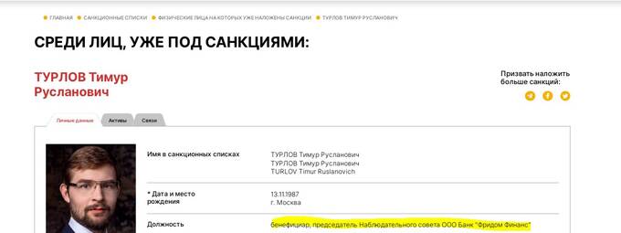 Хотелось бы (или нет?) сказать, что данная персона не имеет никакого отношения к санкционным ограничениям, но это не так. Тимур Русланович лично еще с октября прошлого года находится в списках санкций со стороны Украины.