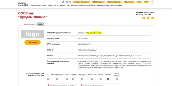 Кроме этого, Украиной наложены санкции и непосредственно на сам бизнес этого персонажа – на общество с ограниченной ответственностью Банк «Фридом Финанс», а по факту – на его финансовую пирамиду.