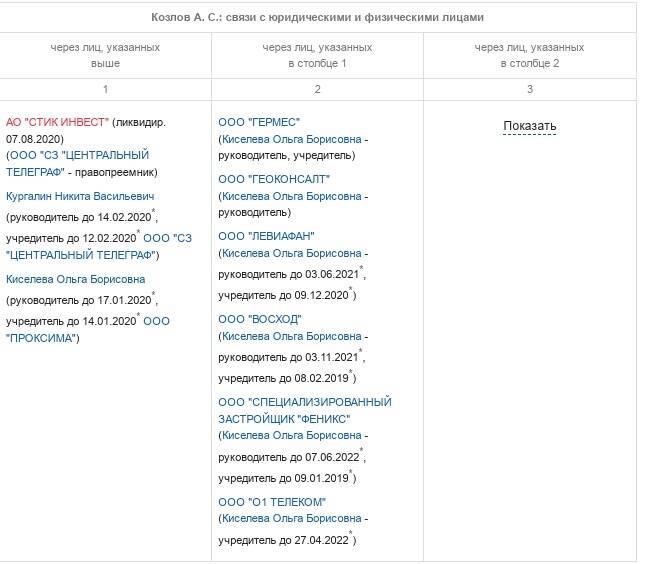 В карточке проекта в качестве застройщика фигурирует некое ООО "Специализированный застройщик "Центральный телеграф" (правопреемник АО "Стик Инвест"), которое учреждено в июле 2019 года и принадлежит некоему малоизвестному Александру Козлову лично и через ООО "Проксима".