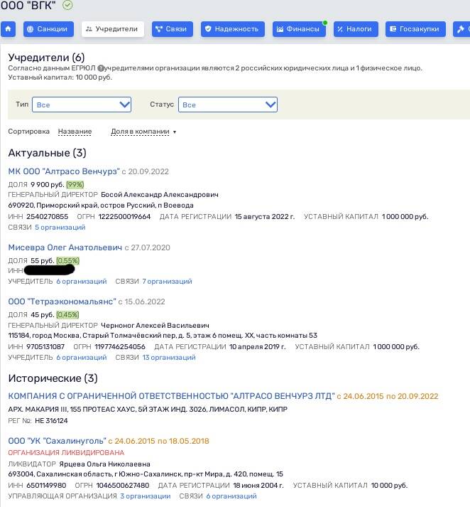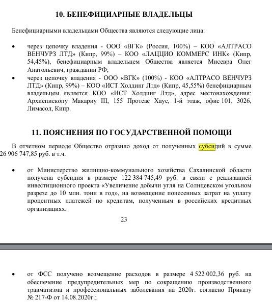 К слову, в марте 2023 года было ликвидировано и ООО "УК "Сахалинуголь", через которое шахта входила в ВГК (опять же через офшор - "Аэтон коммеришиал ЛТД"). Так может те бюджетные миллионы (а то и весь миллиард) в офшоре, что так любимы олигархом, и нужно поискать?