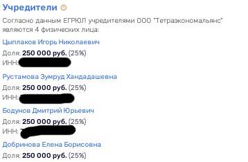 Итак, владельцы "Тетраэкономальянс": один из основателей группы "ИСТ", экс-замглавы ГУП "РОСТЭК" при таможенном комитете России Игорь Цыплаков, бывшая замминистра имущественных отношений РФ Зумруд Рустамова, занимавшая руководящие посты в "Нафта Москва" Сулеймана Керимова, ОАО "Полиметалл" и группе "ИСТ", а также экс-гендиректор ООО "Ист-Капитал", фигурировавший в СМИ как лицо, связанное с компанией "Лента", Дмитрий Бодунов и Елена Добринова, вероятно, родственница Николая Добринова - вице-президента группы ИСТ, главы наблюдательного совета Номос-банка.