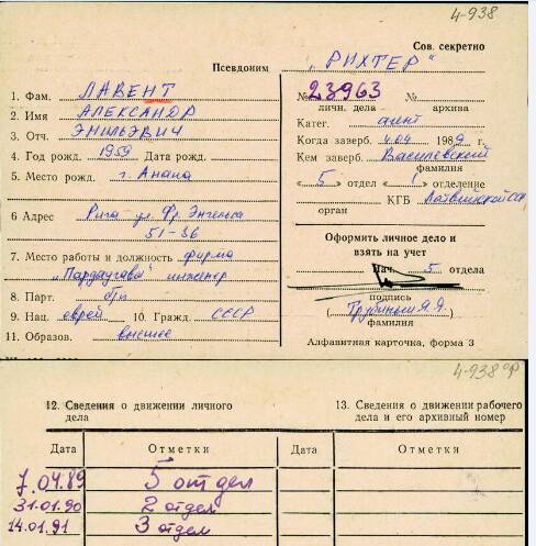 Кроме всего прочего, стало известно о том, что Лавент ранее был агентом КГБ. У него даже была кличка «Рихтер». Об этом свидетельствует документация КГБ Латвийской ССР.