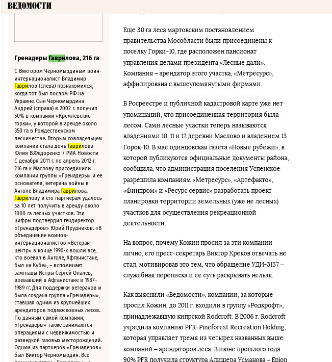 Может ли Чернявский быть номиналом Черномырдина? На этот вопрос лучше ответить компетентным органам. Также под вопросом и то, как аренда лесных угодий вдруг превратилась в частную собственность.