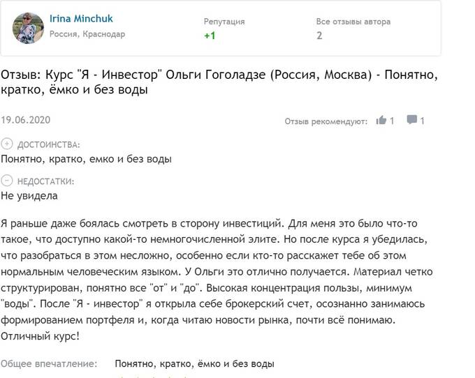 Так что результат немного закономерен. Но, как бы ни было, а обманывать людей – нехорошо. Как с точки зрения морали, так и закона. Однако, как пели еще лиса Алиса и кот Базилио, «на дурака не нужен нож – ему покажешь медный грош, и делай с ним, что хош». Этим и пользуются некоторые наши сограждане. Потому что если лоха не обуешь ты, то его обует кто-то другой. Что, в общем-то, справедливо. И если в начале девяностых все лезли в партнеры к Лене Голубкову, то теперь все хотят заделаться инвесторами, даже не понимая, что это слово значит. И Ольга Гогаладзе предлагает за недорого научить правильно инвестировать.