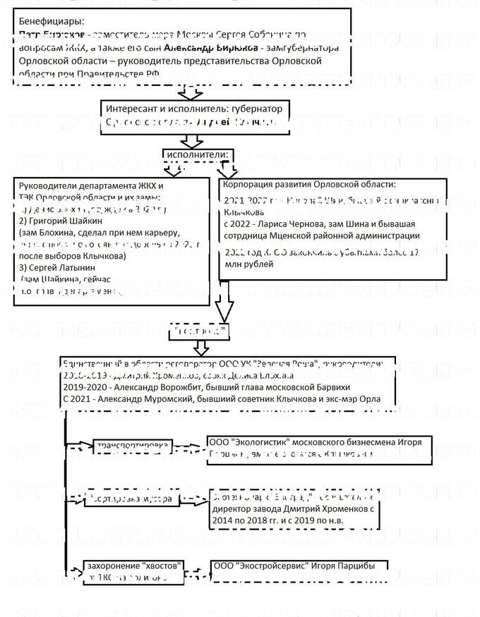 Мусорная реформа для Орловской области - сейчас самый больной вопрос. Два последних полигона уже переполнены, а строительство нового потребует минимум 3 года и для него еще даже не выбрана земля. В субъекте зашкаливает уровень онкозаболеваний, жалобы на смрад от мусорок регулярны. Тем не менее, губернатор Орловской области Андрей Клычков успешно переизбрался. По имеющимся данным, секрет прост: орловский мусор – это бездонная кормушка для влиятельных москвичей, которые пролоббировали кандидата и проспонсировали кампанию. Речь о семействе Бирюковых. Петр Бирюков - заместитель мэра Москвы Сергея Собянина по вопросам ЖКХ, а его сын Александр - замгубернатора Орловской области – руководитель представительства Орловской области при Правительстве РФ. Но по факту Бирюков младший является «смотрящим» за мусорным бизнесом. А в региональном правительстве он числится номинально, что видно даже по сайту. Ни в чем значимом Бирюков не участвует – сплошь фотовыставки и возложения цветов, его польза для области весьма сомнительна.