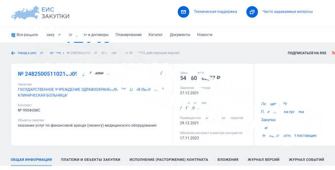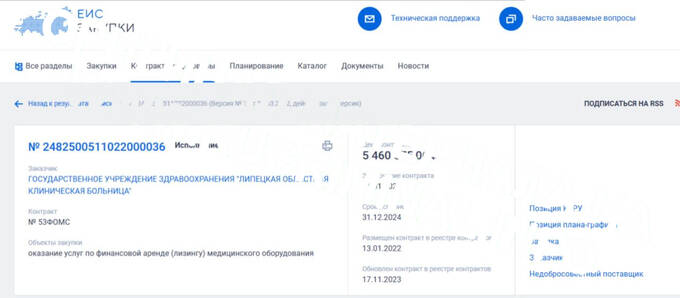 В ноябре 2021- январе 2022 года формально не имеющая отношения к семье главы Липецкой области нижегородская лизинговая компания «А5» заключает с государственным учреждением здравоохранения "Липецкая Областная Клиническая Больница" 5 контрактов на предоставление лизинга на сумму 67 288 623,12 рублей.