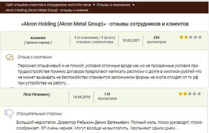 И напоследок: как отзываются бывшие сотрудники АО «Акрон Холдинг» о работе