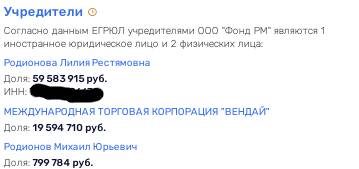 По данным "Руспрофайл", офшор имел в России целый ряд активов, связанных с Родионовым, в том числе доли в ООО "Фонд РМ" в Самарской области (Тольятти) и ООО "Витязь" по производству пива в Димитровграде (Ульяновская область). Именно в Димитровграде в своё время был прописан и пивзавод Родионова, а в самарской фирме, вместе с "Вендаем", и вовсе доли имели сами Лилия и Михаил Родионовы. Вероятно, и деньги от субсидий стоило поискать на Сейшелах?