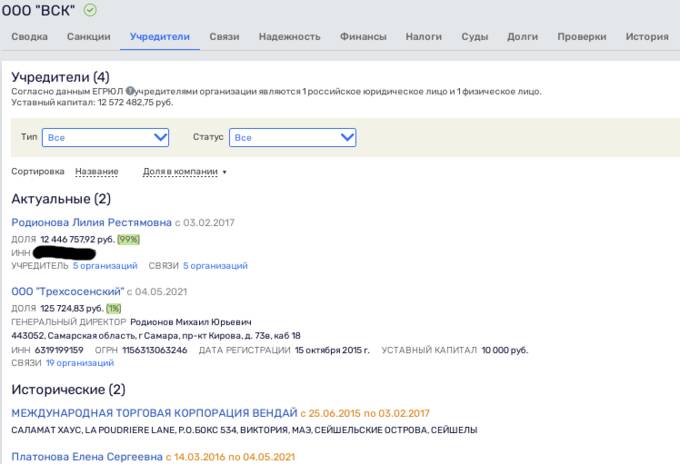 В этот раз Родионов поступил хитрее - актив оформлен на ООО "ВСК". В последнем Родионов также является директором, а владельцем проходит его жена - Лилия Родионова и само ООО "Трехсосенский". И самое занятное, что ранее среди владельцев этой фирмы отметился уже знакомый нам офшор с Сейшел - корпорация "Вендай". Не оказалось бы потом, что и у этого предприятия капиталы изменят курс, но, если что, искать правоохранители уже знают где.