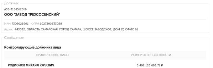 В октябре 2019 года само ООО "Завод Трехсосенский" обращается с иском о самобанкротстве, заявляя о неподъемном долге в 2,4 млрд рублей. Банкротом ООО "Завод Трехсосенский" было признано в октябре 2022 года.