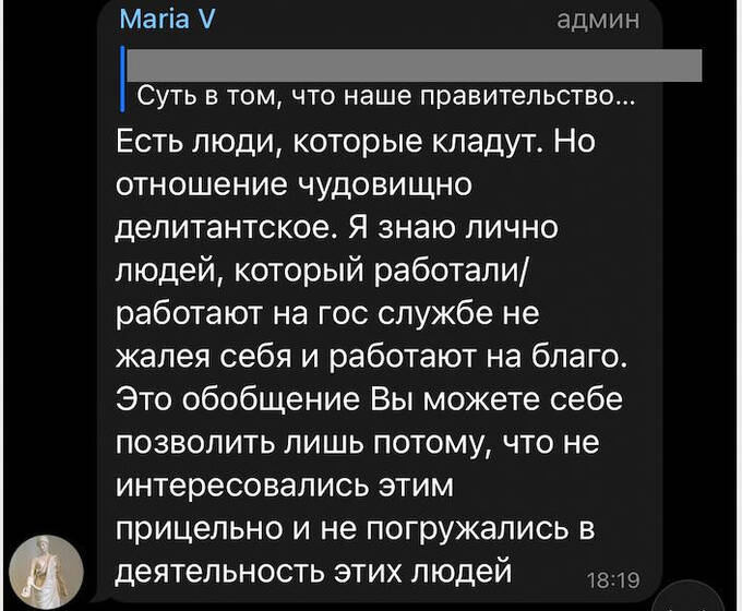 В мае главред Republic Дмитрий Колезев публиковал скриншоты из чата выпускников: там Воронцова (по данным @metlapress, это точно она) регулярно высказывается в поддержку политики отца — например, называет присоединение Крыма «волеизъявлением народа» и противопоставляет Россию Германии 1930–х.