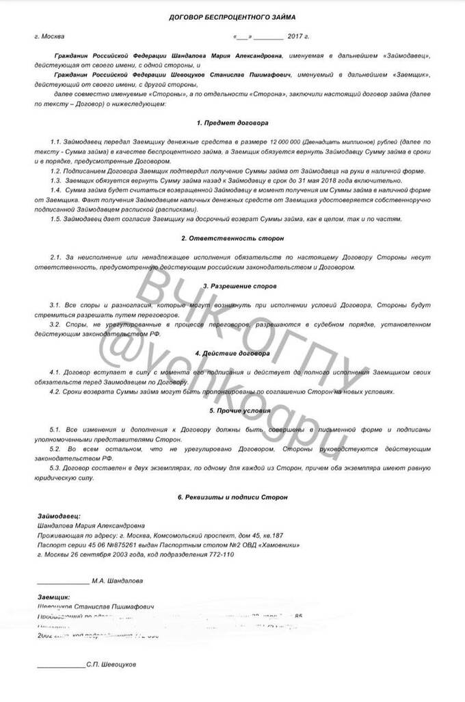 • Займ между Марией Шандаловой и Шевоцуковым Станиславом Пшимафовичем на 12 млн. руб.,