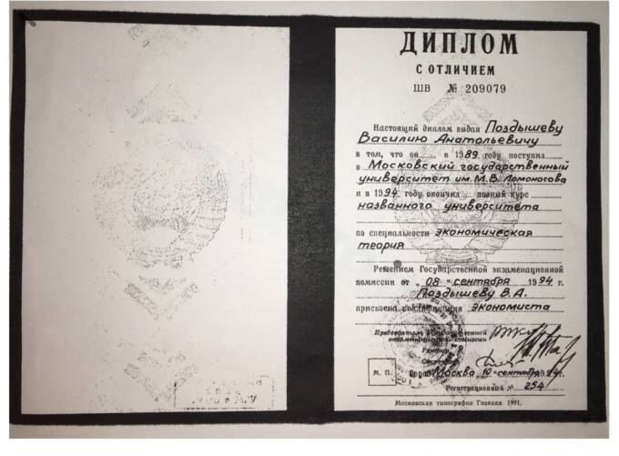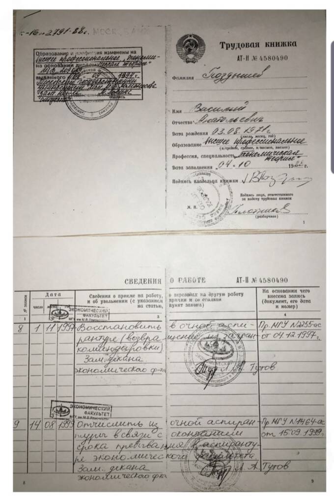 В архивах МГУ, где, согласно информации на сайте ЦБ, еще в советские годы учился будущий «могильщик», следователи нашли документы, с которых были срезаны фотографии студента экономического факультета МГУ. Копии документов, изъятых из архива МГУ, стали доступны не только следователям, но и журналистам. Вот они: